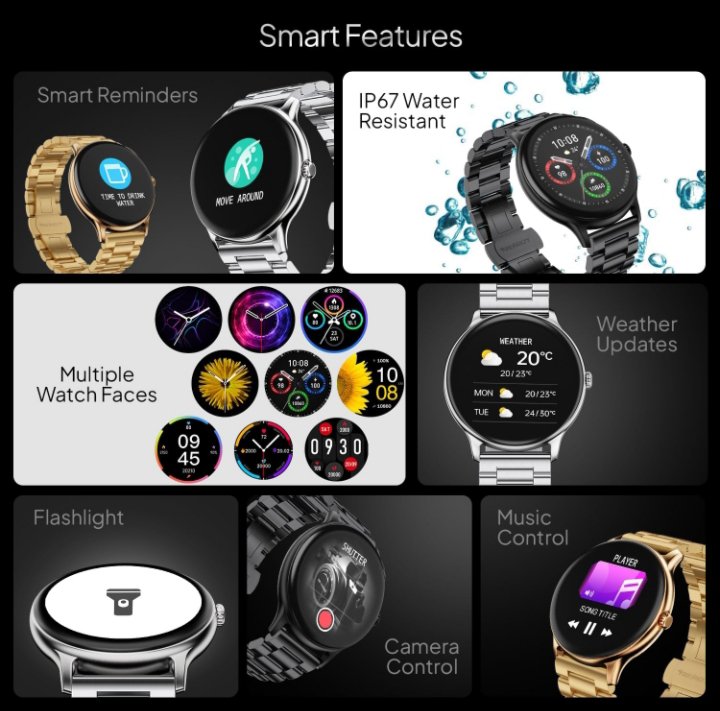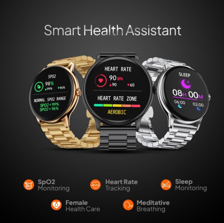 Fire-Boltt Phoenix Pro Round Smart Watch 1.39″ HD Display with Bluetooth Calling, AI Voice Assistant, SpO2 & Heart Rate Monitor, 120+ Sports Modes, IP67 Waterproof Smartwatch for Men & Women – Black